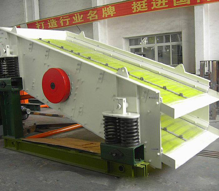 振動篩的運作過程以及組成結構 振動篩的運作過程以及組成結構 振動篩工作原理 振動篩將顆粒大小不同的碎散物料群,多次通過均勻布孔的單層或多層篩麵,分成若幹不同級別的過程成為篩分。大於篩孔的顆粒留在篩麵上,稱為該篩麵的篩上物,小於篩孔的顆粒透過篩孔,稱為該篩麵的篩下物。實際的篩分過程是:大量粒度大小不同、粗細混雜的碎散物料進入篩麵後,隻有一部分顆粒與篩麵接觸,由於篩箱的振動,篩上物料層被鬆散,使大顆粒本來就存在的間隙被進一步擴大,小顆粒乘機穿過間隙,轉移到下層或運輸機上。由於小顆粒間隙小,大