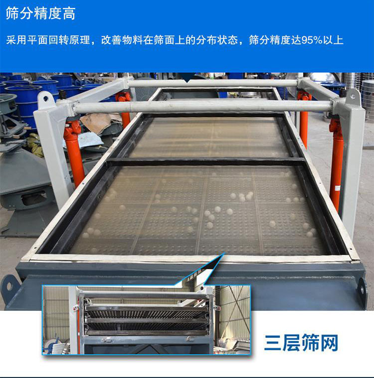 換網更加便捷,操作簡單,牢固可靠;大型靜電噴塑工藝,設備更加美觀、耐磨、防鏽。對於生產石油支撐劑壓裂砂的生產廠家對於砂子的精度和篩分產量有著非常高的要求。而生產的超精細方形搖擺篩對於篩分石油支撐劑壓裂砂有著非常好的使用現況和應用前景。目前很多企業對於方形搖擺篩的使用和認知都在一步步替代普通的振動篩分機。石油支撐劑壓裂砂使用方形搖擺篩符合環保要求:方形搖擺篩具有良好的封閉性能,作業過程無分粉塵的逸散,為環境與人員安全提供保障。