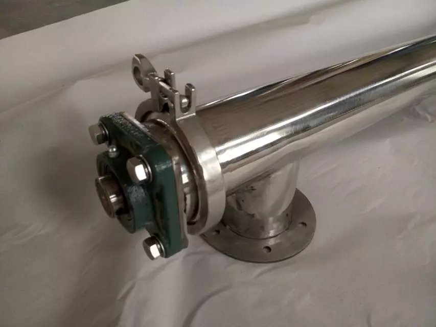 調整螺旋輸送機料鬥入口的注意事項(調整螺旋輸送機的作用) 進料口的調整應確保進料口的物料在寬度方向上均勻分布,以避免螺旋輸送機的進料不均勻,從而導致鏈板(或膠帶),螺旋輸送機料鬥或鏈輪的不均勻。 磨損或抬起鏈板(或膠帶)以便流下。 為此,請考慮以下因素: 1)進料槽的角度應適當,以避免進料口前的材料堵塞。 滑管的滑移角根據材料的特性,滑管的材料和形狀以及使用條件確定。 一般來說,滑動角度比材料的動態休止角5°~10°,阻擋材料的材料,水分少的材料和機械力流動的材料可以取小的值, 粉末和水分