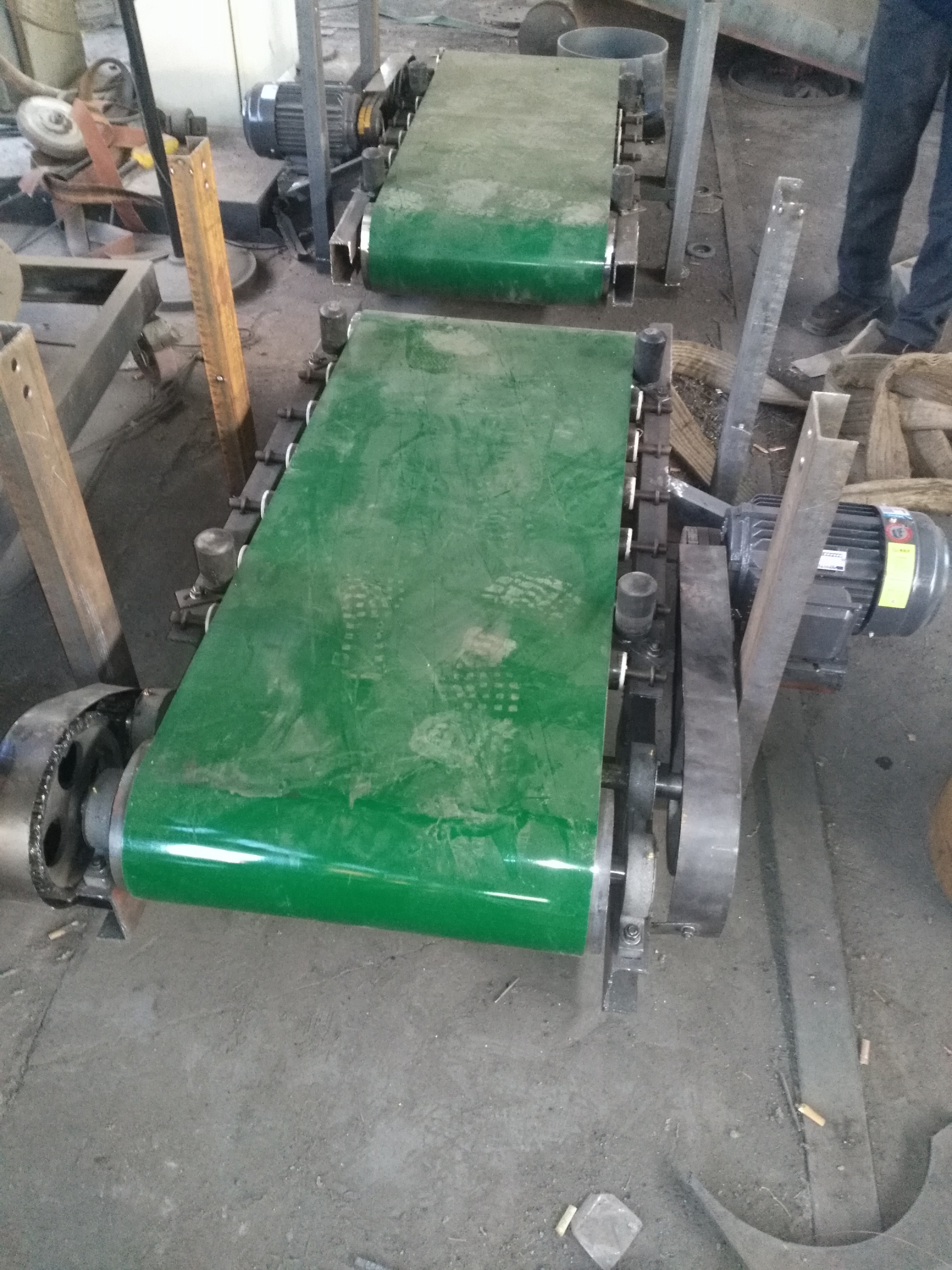 皮帶輸送機在汽車部件輸送過程中的應用(皮帶輸皮帶輸送機) 皮帶輸送機水平輸送,主要在各工位之間進行輸送,使用一調頻電機帶動齒輪、齒條進行,作一工位距離的往複運動。為保證皮帶輸送機運行的平穩性,可在往複杆的一頭安裝一雙作用氣缸,來平衡運行時產生的不平穩運動;其頂升、下降運動,主要為到達一工位後落下,方便夾具對工件進行加緊,焊接結束後,頂升以使工件離開夾具,方便工件的輸送。皮帶輸送機在各工位使用雙作用氣缸推動斜楔平移交叉臂機構來完成升降運動。 皮帶輸送機雖然采用氣缸進行頂升、降落運動具有價格便