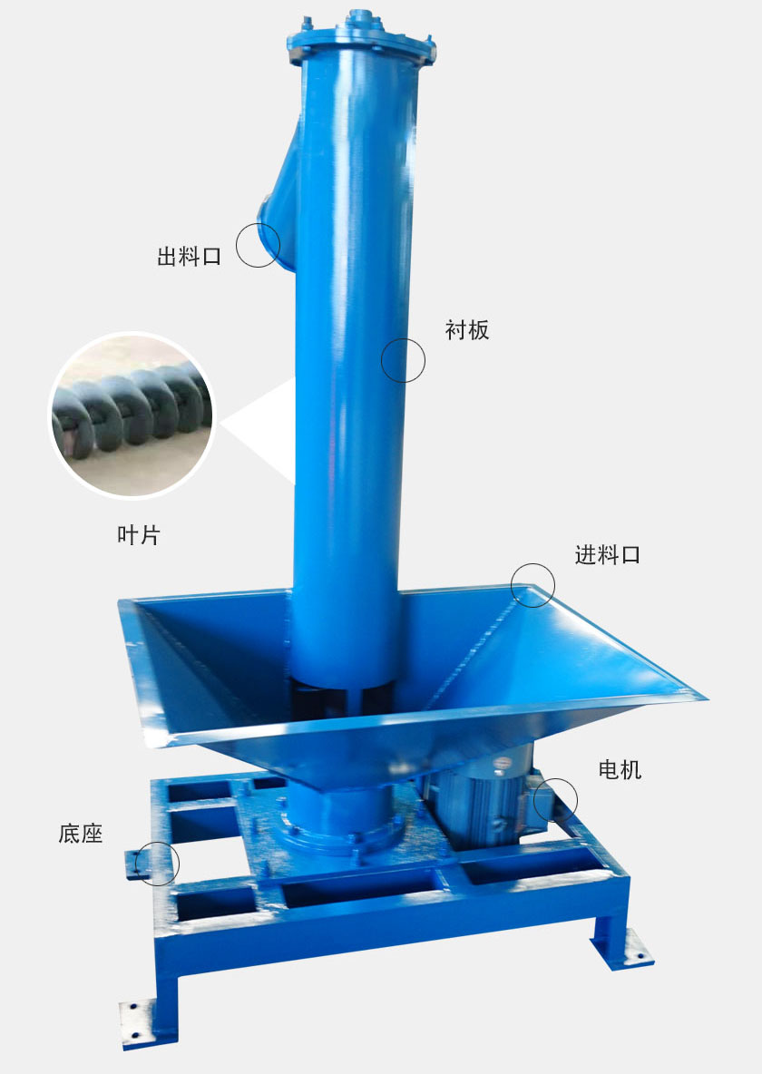 垂直螺旋輸送機依靠較高的螺旋速度向上輸送物料,螺旋葉片與管壁與物料充分接觸,磨損快,會增加維護成本。