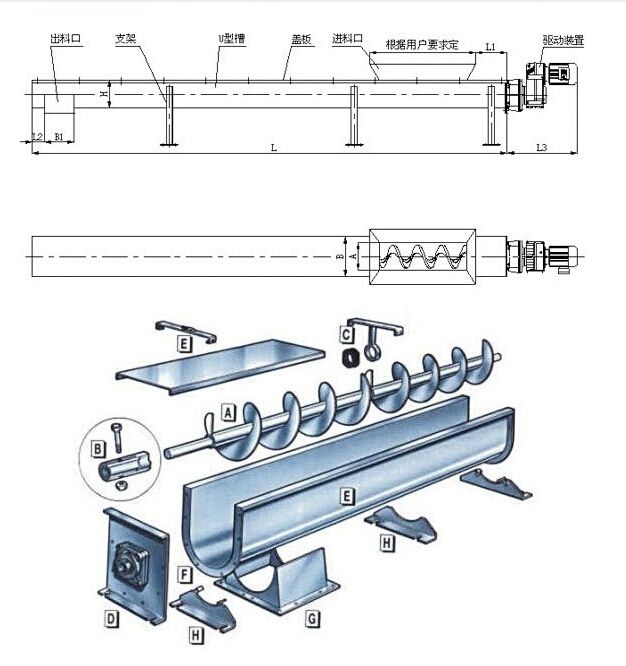 螺旋軸驅動方式:連接軸驅動,配備變頻調速電機 (黑注明電機功率).