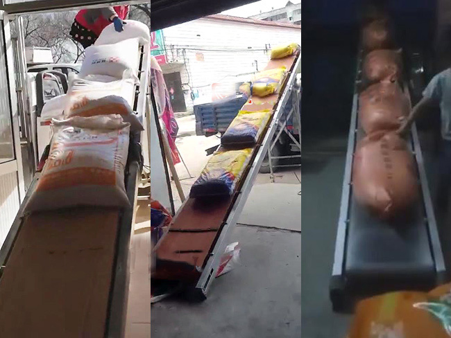折疊皮帶輸送機多用於袋裝物料的輸送、裝車、卸車、倒倉、碼垛等多種用途,室內室外均可使用。折疊皮帶輸送機直接應用於農機具,農用三輪車和五輪車還有拖拉機收購糧食的輸送裝上車,折疊後長度是原來的一半,掛在車上裝卸方便。
