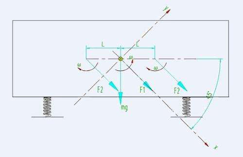 橢圓振動篩電動機通過傳動帶驅動齒輪箱式同步器使三軸強迫同步,其中中間軸與兩側軸轉向相反,相應帶動三組塊偏心式振動器篩箱的座式安裝振動篩。篩箱運動軌跡為橢圓形,電動機可左裝或右裝 。