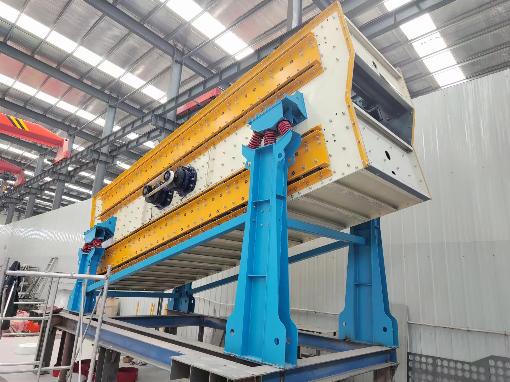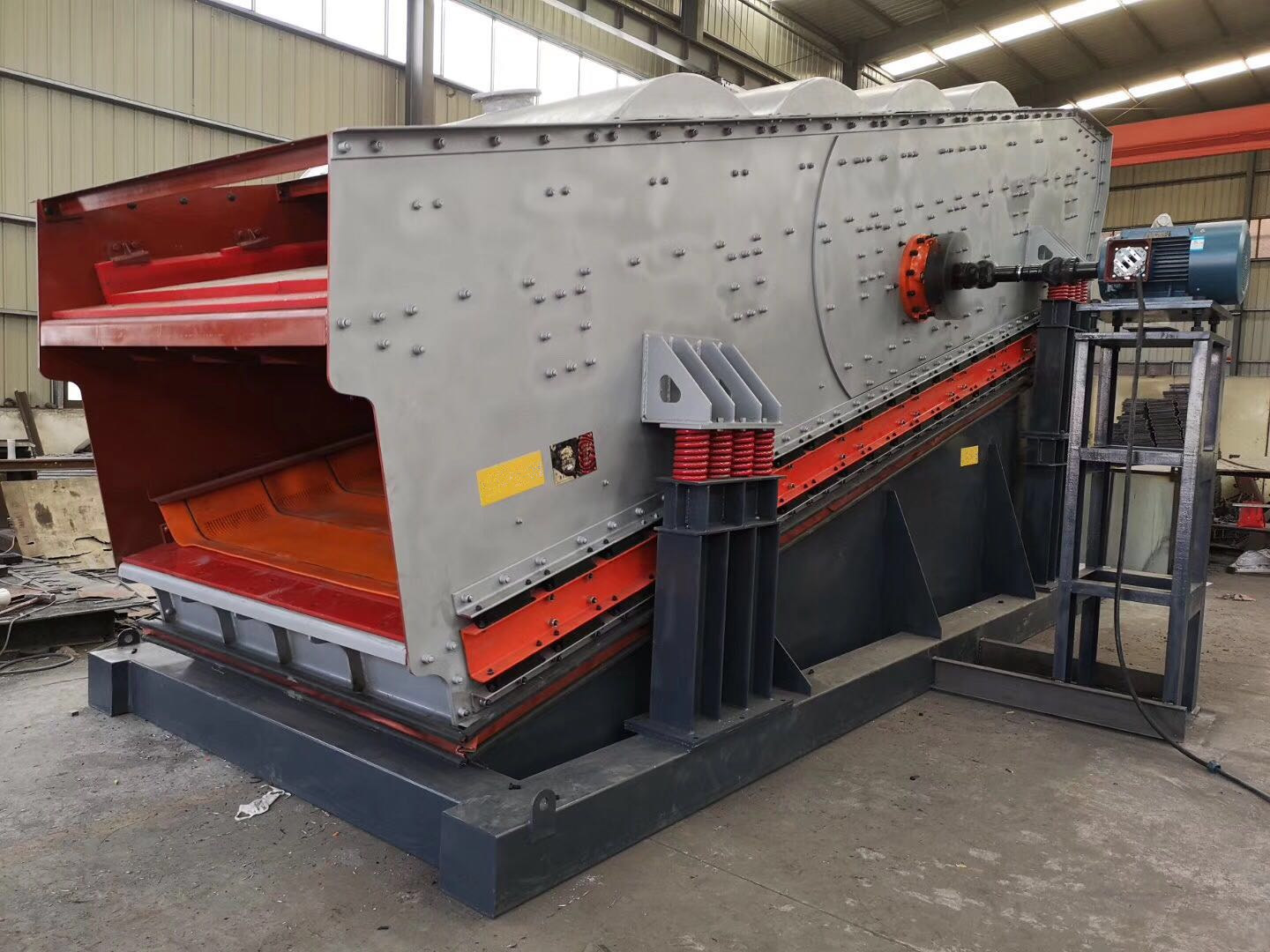 2、將香蕉篩和弛張篩的各自優點有機地融合在一起。入料端物料速度快、料層薄,大量物料透篩,處理量高。排料端篩麵傾角低,物料速度慢,這得以將剩餘的篩下物徹底透篩,達到非常高的篩分效率。